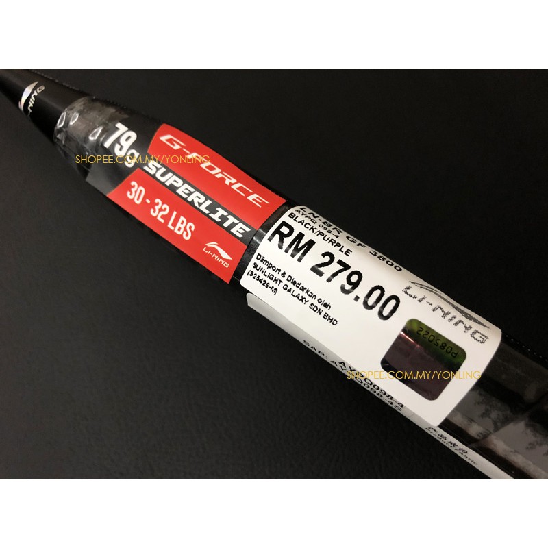 LI-NING G-Force 3800 SUPERLITE Original (32lbs) Black Purple Badminton Racket