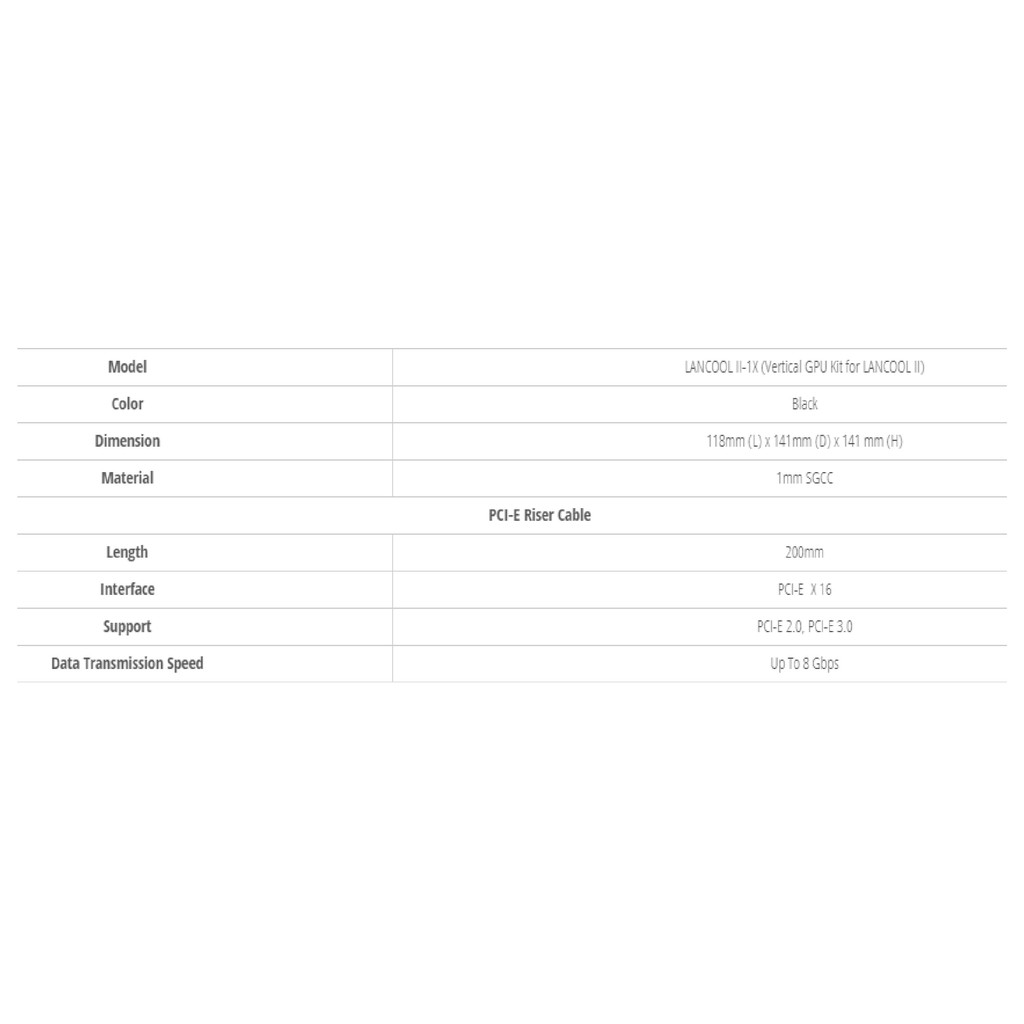 LIAN LI LANCOOL-II-1X Vertical GPU Raiser Upright display card kits (LANCOOL II & 215)