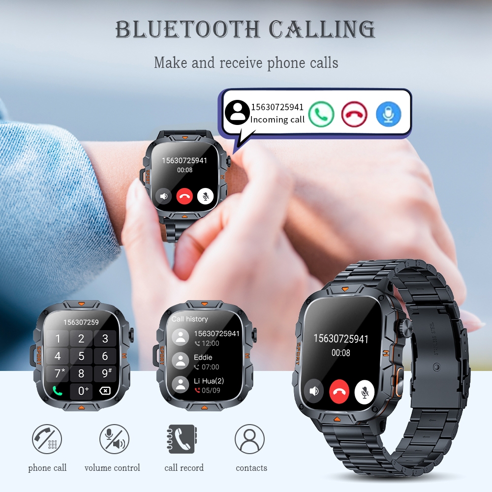LIGE Smart Watch Men Bluetooth Call Flashlight Waterproof 100+ Sports 420mAh Blood Pressure Heart Rate Monitor Smartwatch For Android And IOS