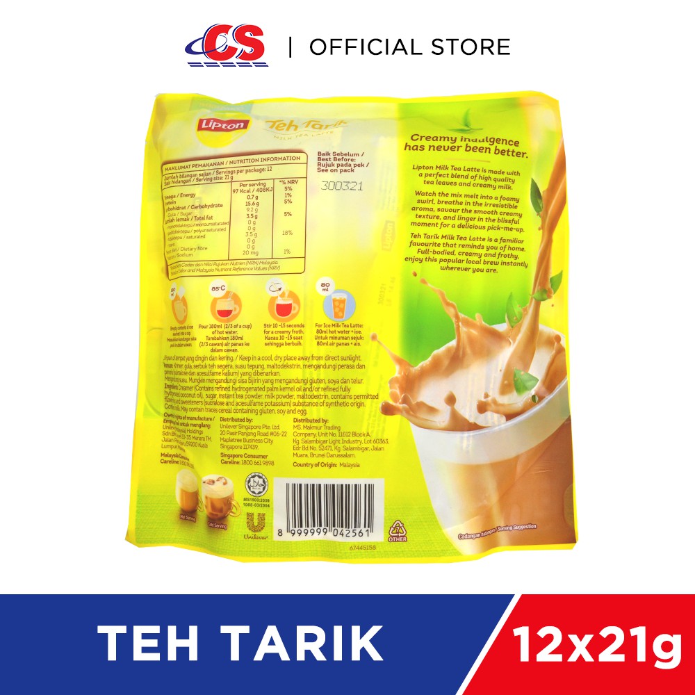 LIPTON Milk Tea Teh Tarik 12s x 21g