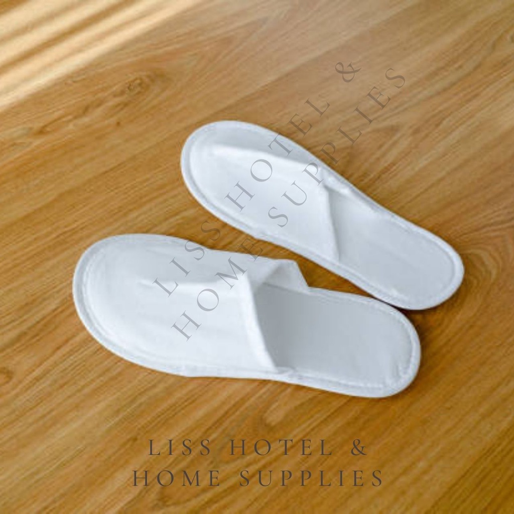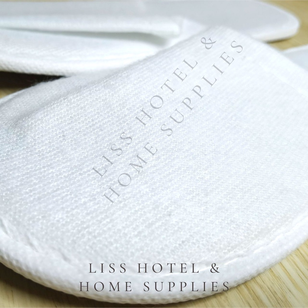 LISS Nap Cloth Selipar Hotel Slipper Home Selipar Rumah Murah 4mm Anti-Slip Rubber Sole - White (1 Pair)