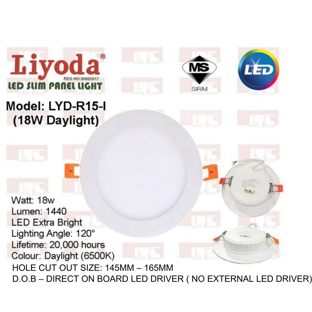 LIYODA LED SLIM PANEL LIGHT ROUND / CEILING LIGHT / 18W 6inch / 6' / DAYLIGHT / 6500K / (HIGH QUALITY SUPER BRIGHT)