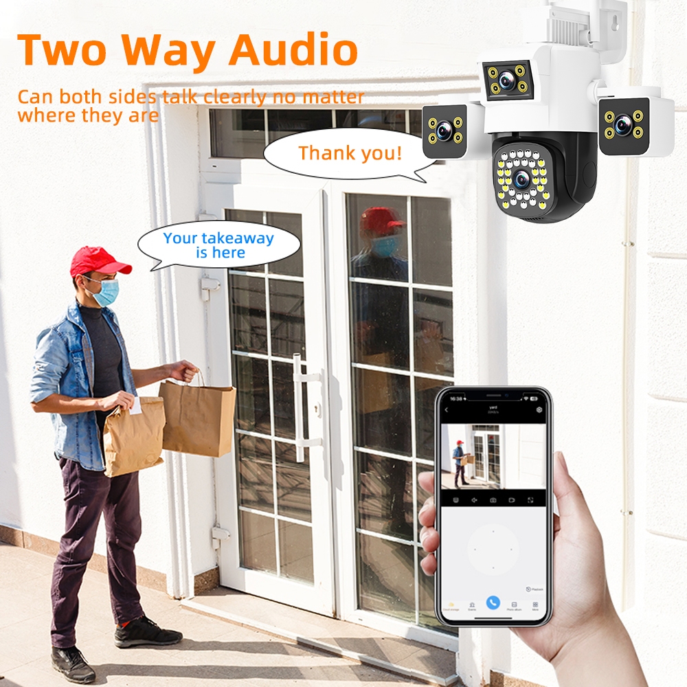 LLSEE 16MP 6K Four Lens/Screen Night Vision Two-Way Call Waterproof CCTV Camera