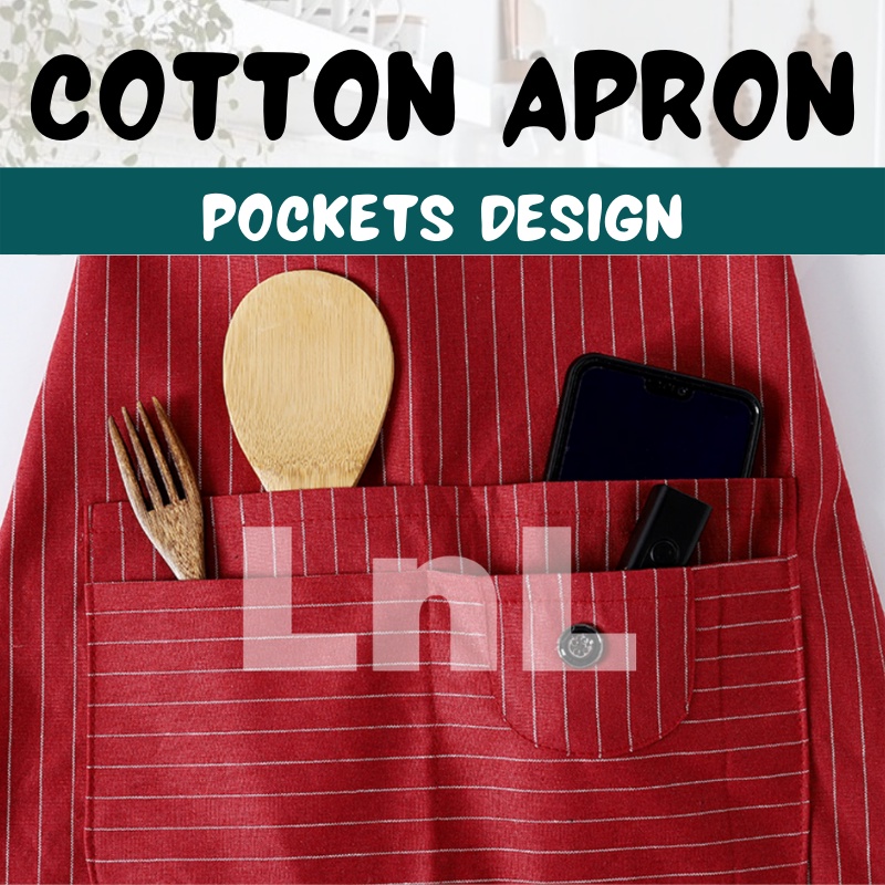 LNL Apron Kitchen Cotton Apron Kelabu Hitam Kain Waterproof Oil-Proof Large Pocket Coffee Shop Apron Dapur