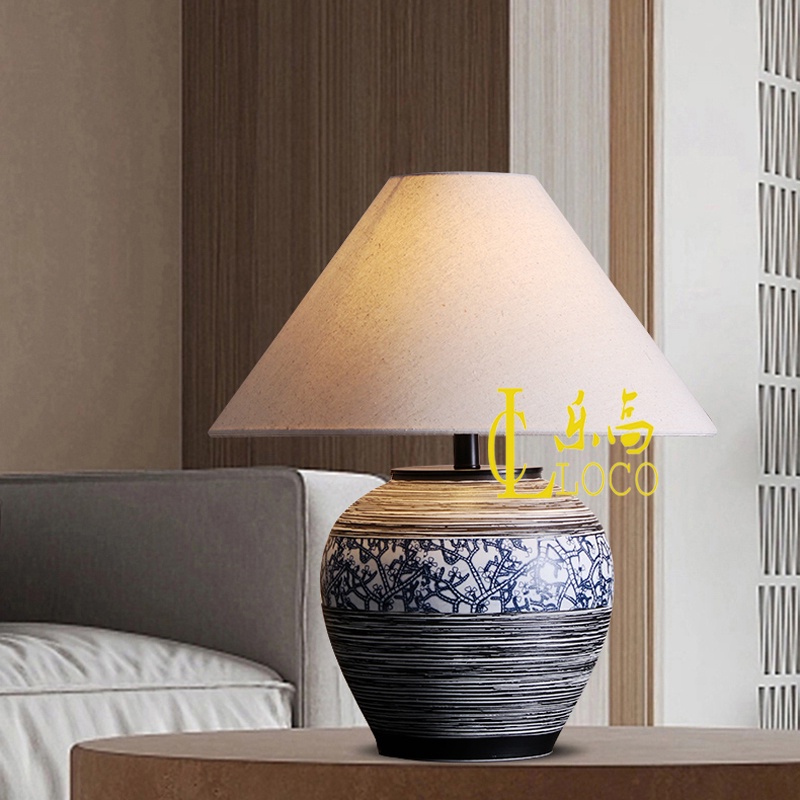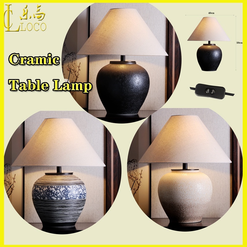 LOCO Ceramic Table Lamp Living Room Retro Table Light Bedroom Table Lamp Home Decoration LED Wabi-Sabi Homestay Desk Lamp Study