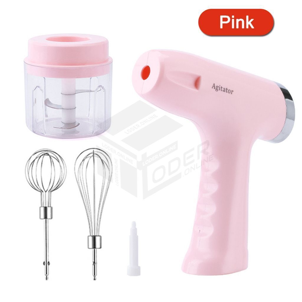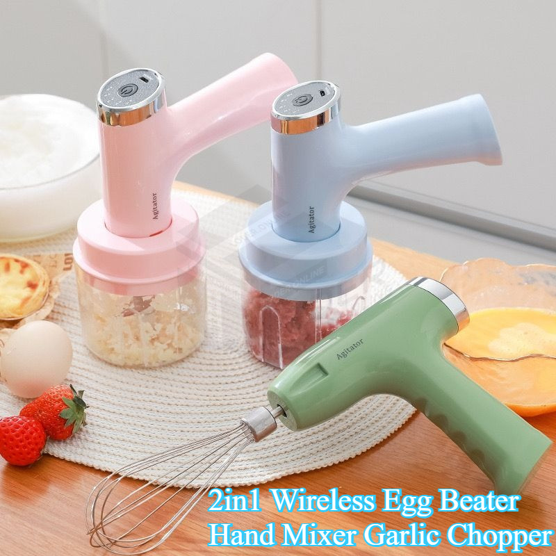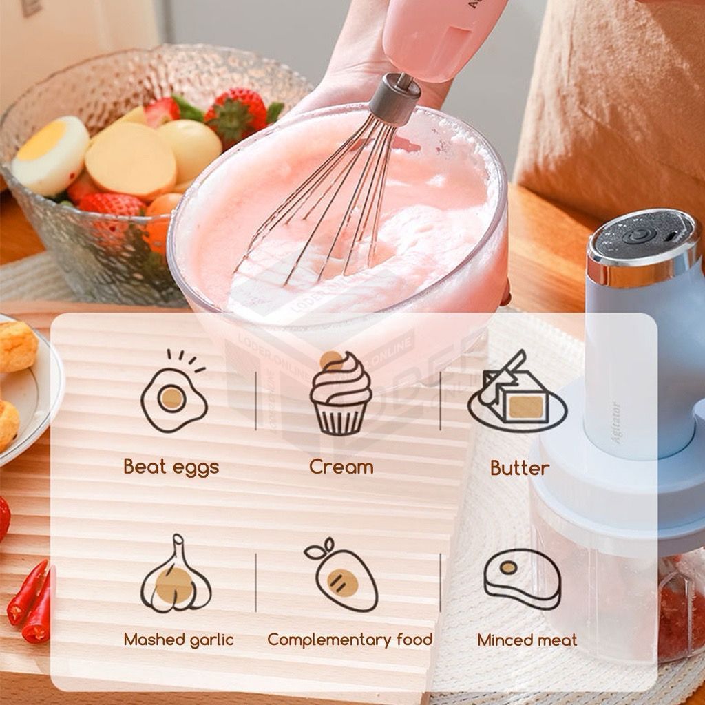 LODER 2in1 Wireless Egg Beater Hand Mixer Garlic Chopper Processor Blender Meat Grinder Baking Food