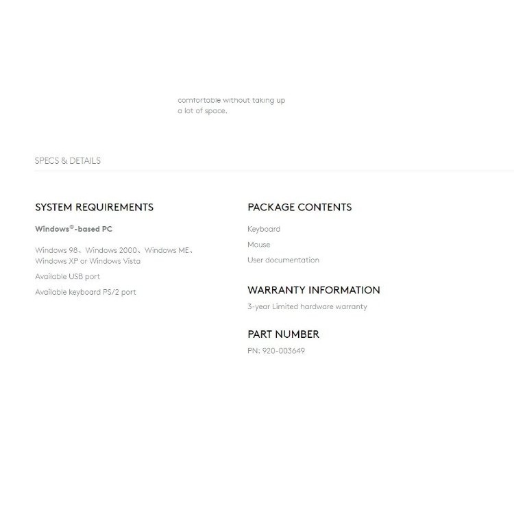 LOGITECH CLASSIC DESKTOP MK100 COMBO FULL SIZE PS2 WIRED KEYBOARD AND MOUSE SLIM AND COMPACT SPILL RESISTANT DESIGN (920