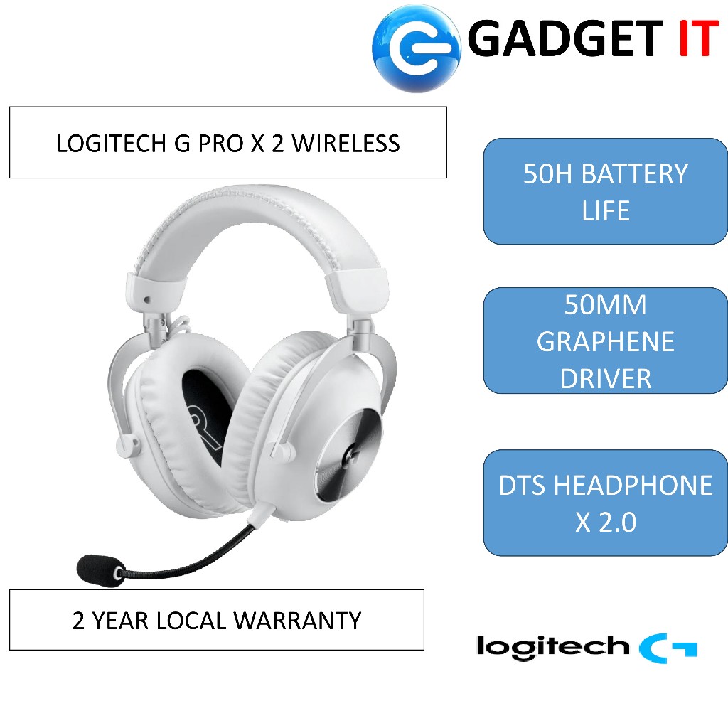 LOGITECH G PRO X 2 LIGHTSPEED WIRELESS GAMING HEADSET DETACHABLE BOOM MIC,50MM GRAPHENE DRIVERS,DTS:X