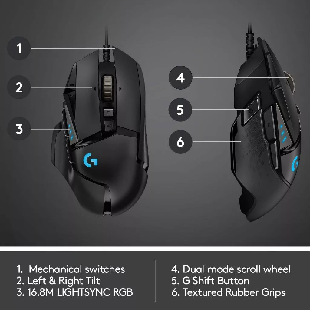 LOGITECH GAMING G502 HERO WIRED USB MOUSE | HERO 25K SENSOR | 25600 DPI | 11 PROGRAMMABLE BUTTONS