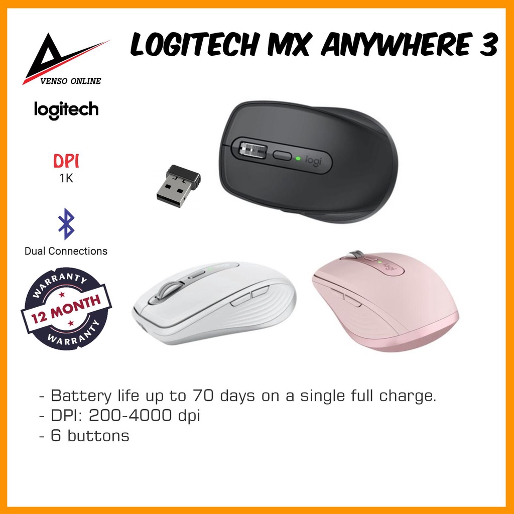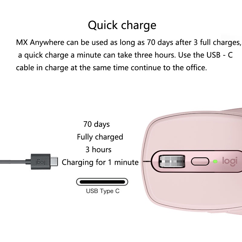 LOGITECH MX Anywhere 3 Rechargeable DARKFIELD High Precision Wireless Mouse 200-4000 Dpi Up to 70 Days Battery Life