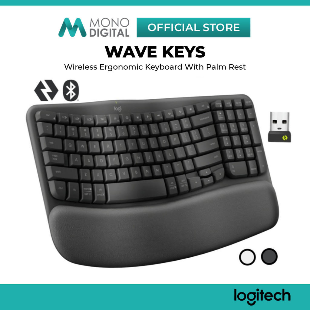 LOGITECH WAVE KEYS WIRELESS BLUETOOTH ERGONOMIC KEYBOARD WITH PALM REST / LOGI BOLT RECEIVER / BATTERY INDICATOR