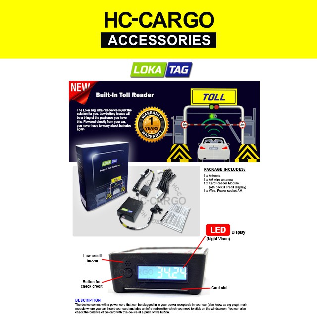 LOKATAG Built-In Toll Smart Tag Reader with Balance Credit Reader LED touch n go LOKA TAG