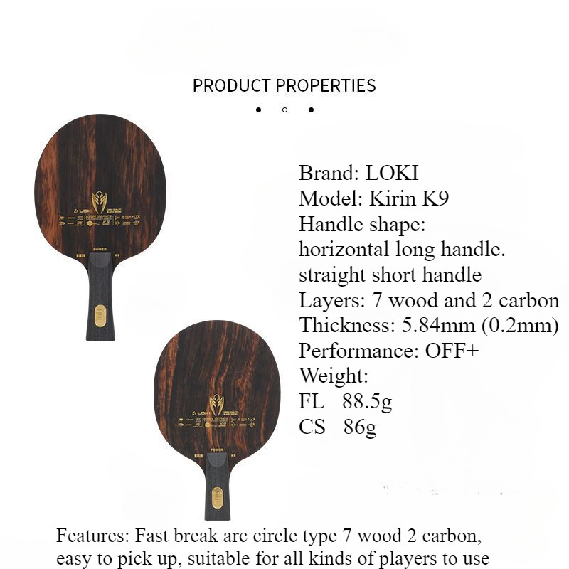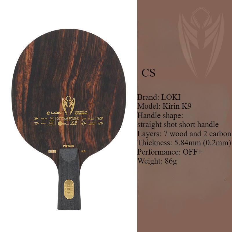 LOKI Kirin K9 Table Tennis Racket Bottom Plate Made of 7 Wood and 2 Carbon With Built-in Carbon Black Sandalwood Surface Material Advanced Table Tennis Bottom Plate