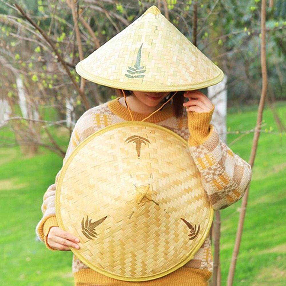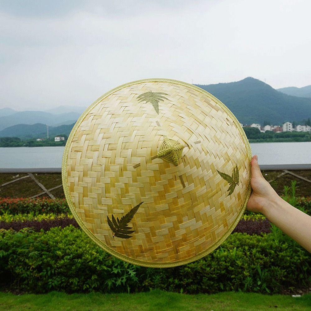 LOMBARD Bamboo Rattan Hats Sunscrean Hats Elegant Outdoor Women Sun Hats Cone Bucket Hats Leaf Dance props Chinese Style Hats Tourism Rain Caps