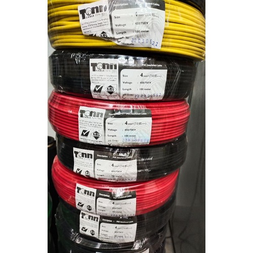 LOOSE CUT TONN 4mm (7/0.85mm) PVC Insulated Power Cable Wire /Electrical Kabel PVC Bersalut (SIRIM APPROVED)