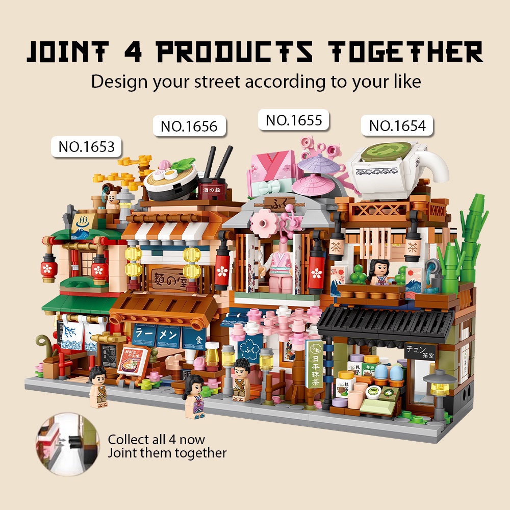 LOZ Mini Blocks 1653 / 1654 / 1655 / 1656 Japanese Street Hot Spring Kimono Shop Matcha Shop Ramen Shop