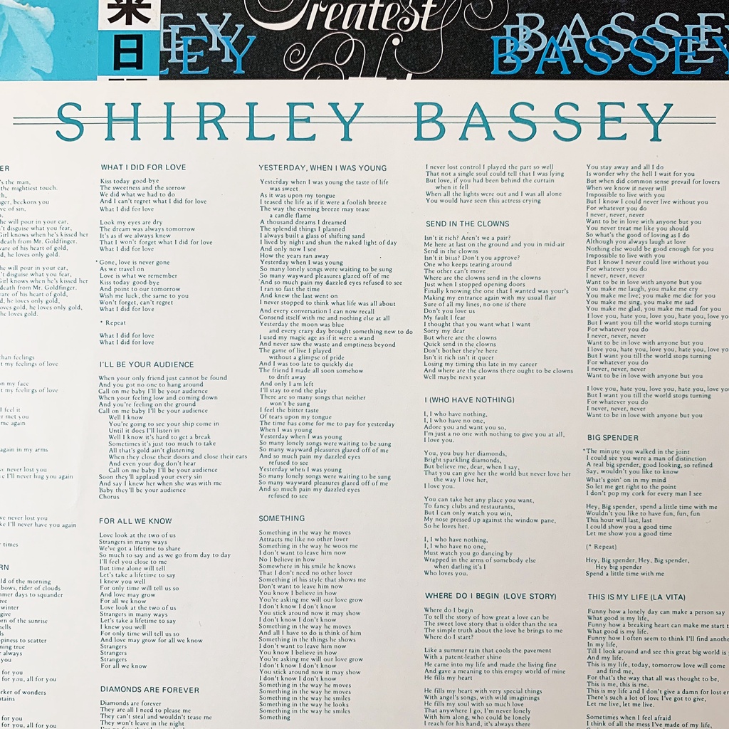 LP - Shirley Bassey - Greatest Hits Vinyl Record (Japan Pressing/ 1981)