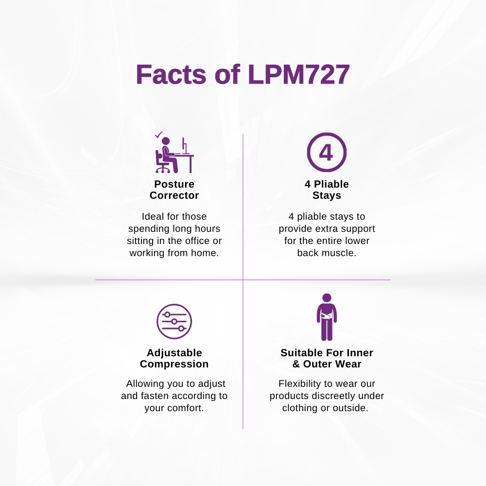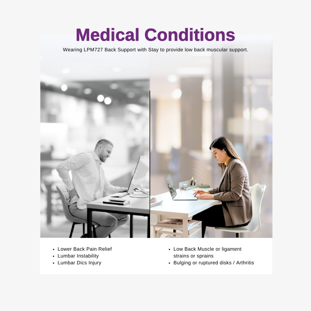 LPM Back Support 727 Mid to Low Lumbar Support Adjustable Neoprene with Removable Lumbar Pad & 4 Pliable Stays
