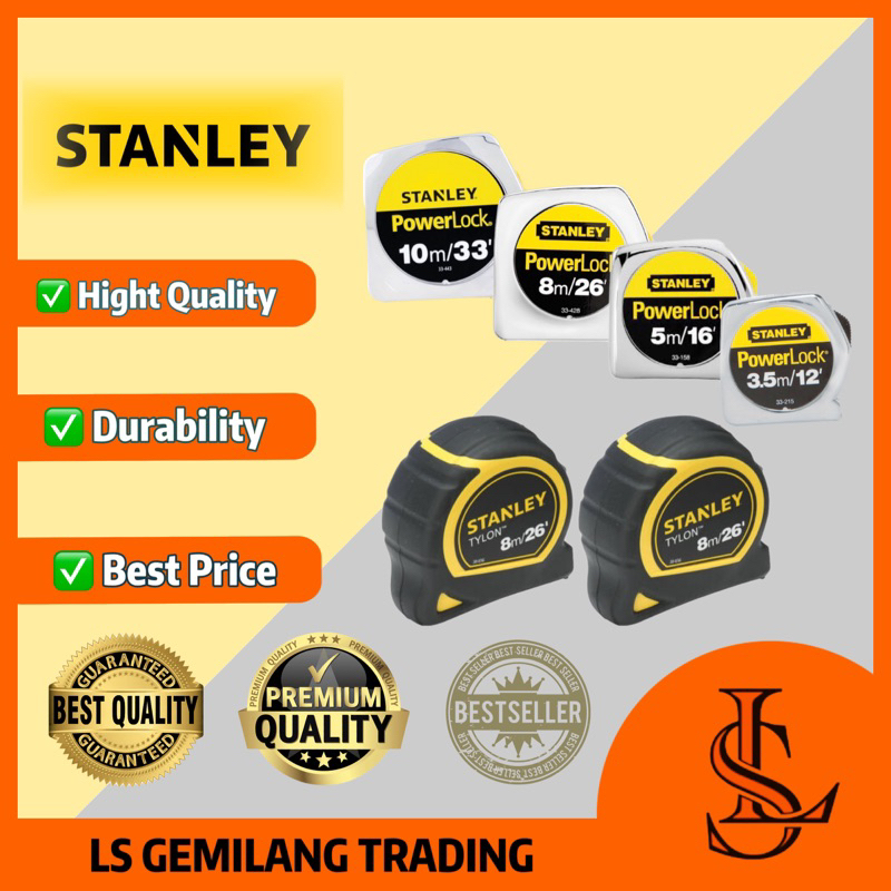 LS GEMILANG STANLEY 10M MEASURING TAPE tylon powerlock measure TAPE pengukur tape ukur 5m 8m power lock measurement tap