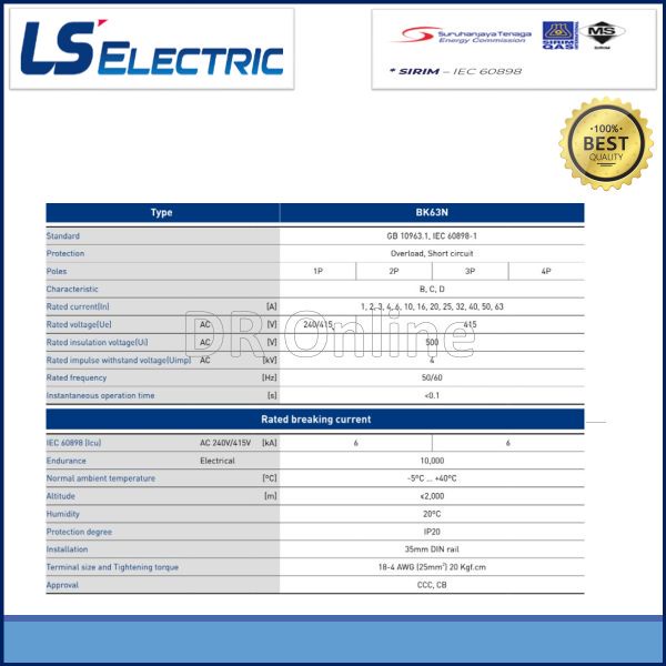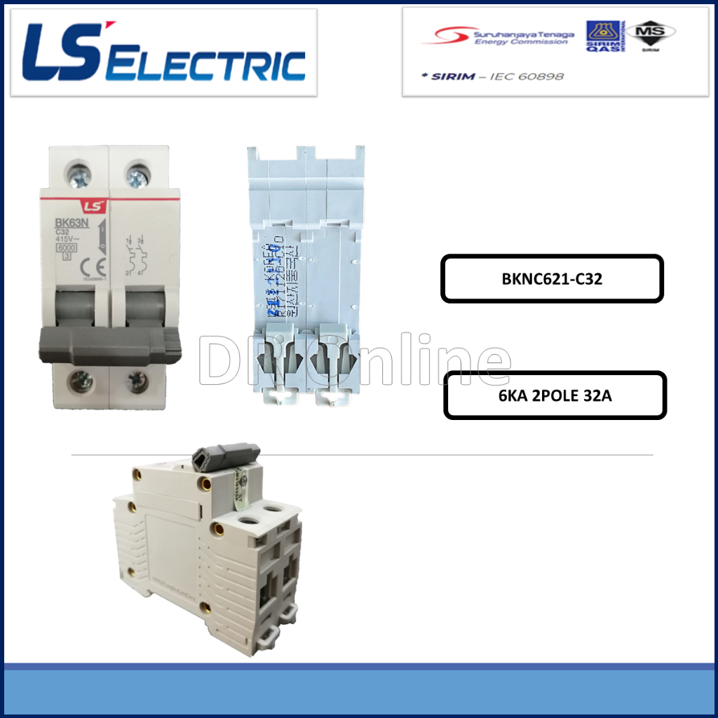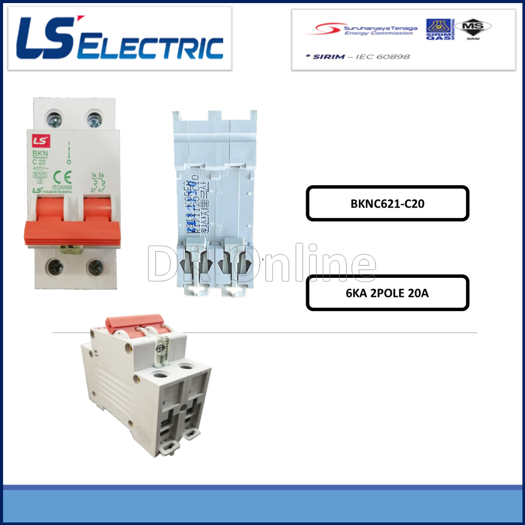 LS MCB 2Pole MINIATURE CIRCUIT BREAKERS MCB, 2P ~ 6KA ~ (6A - 63A) , (BKNC621) C CURVE
