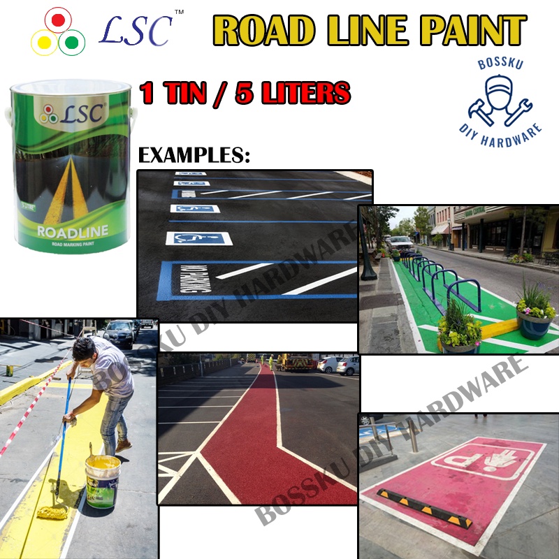 LSC ROAD LINE PAINT (5 Liter) Heavy Duty Yellow Green Red White Blue Pink Green Road Line Cat Jalan Raya BOSSKU