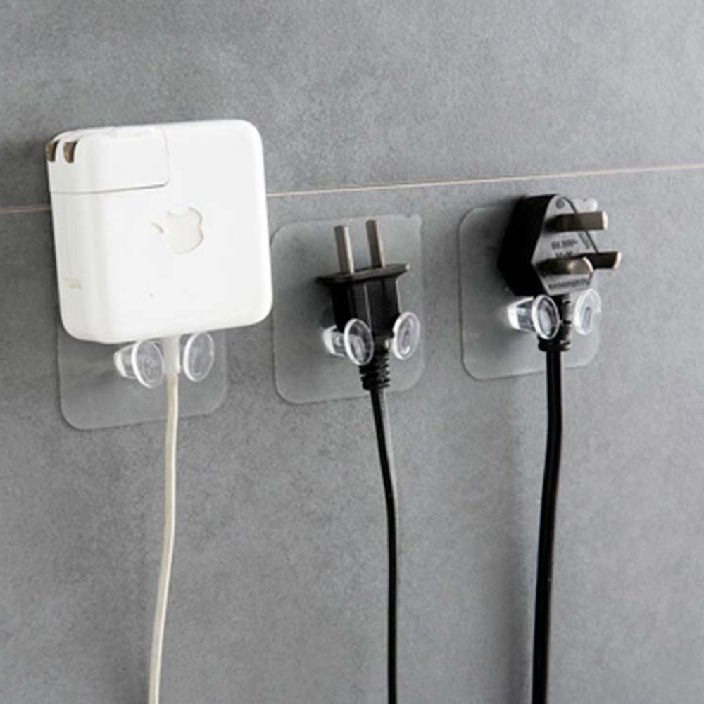 LSM READY STOCK Transparent Strong Seamless Plug Hook Storage Sticky Hook Socket Electrical Wire Plug