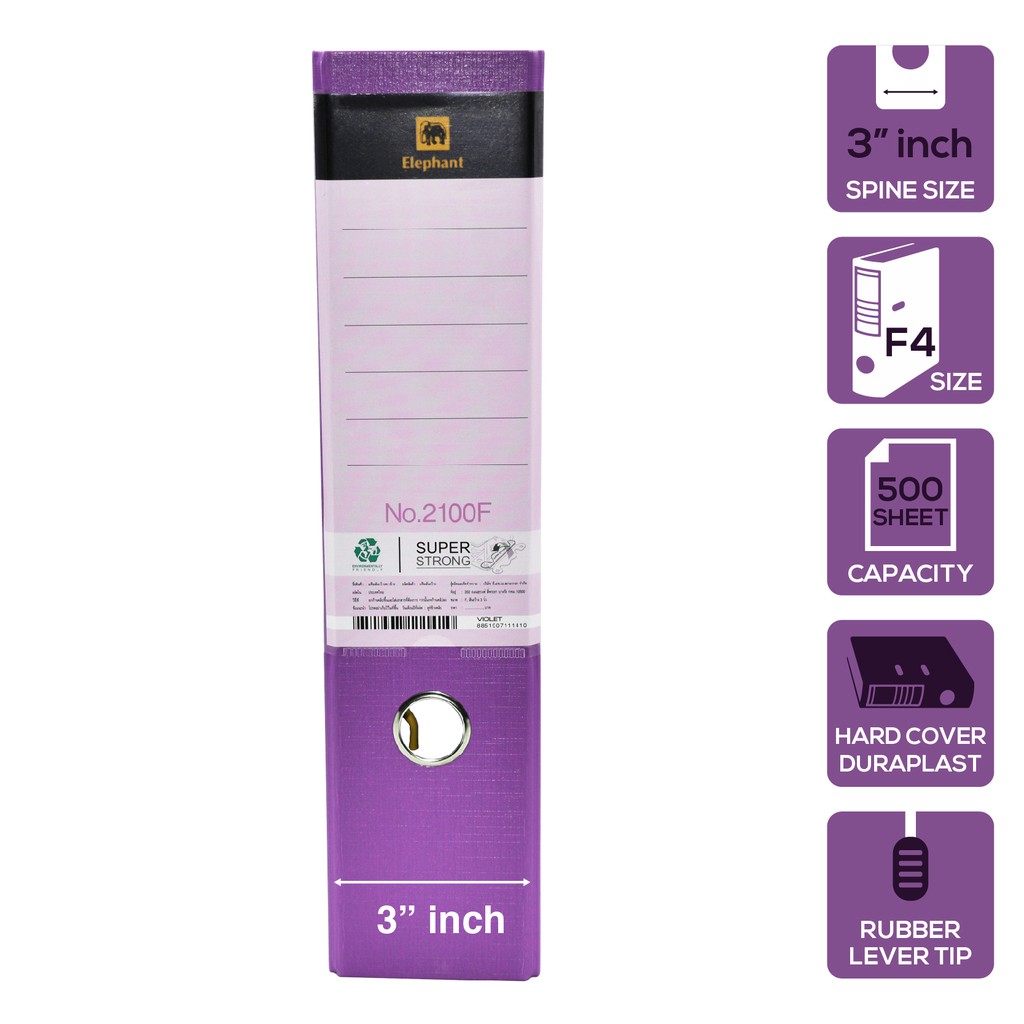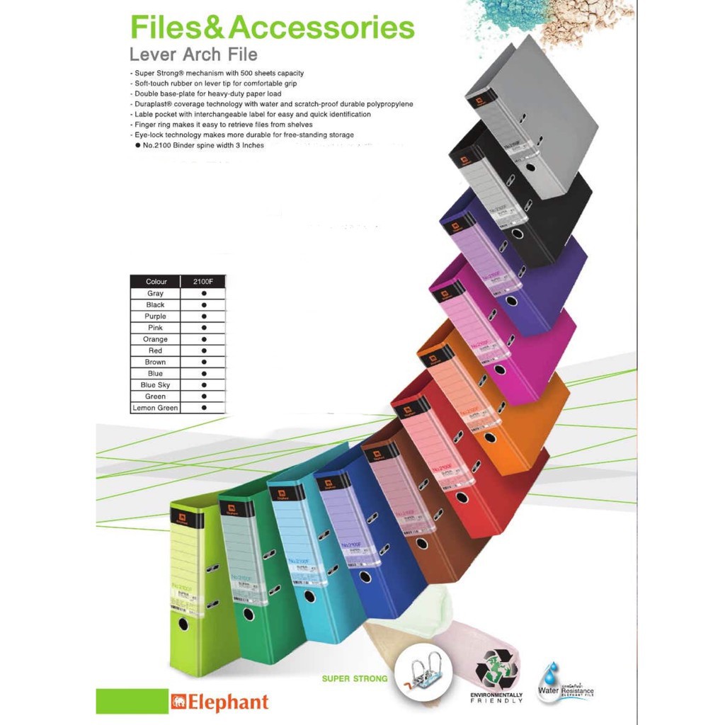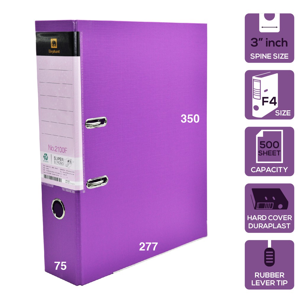 LTH Elephant 2100F Lever Arch File 3" Inch F4 Size 500 Sheet Capacity Assorted Colour