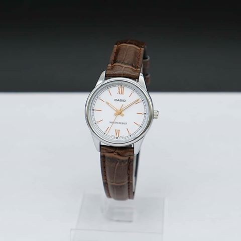 LTP-V005L-7B3 Women Analog Brown Leather Band White Dial Original Casual Watch (LTP-V005L)
