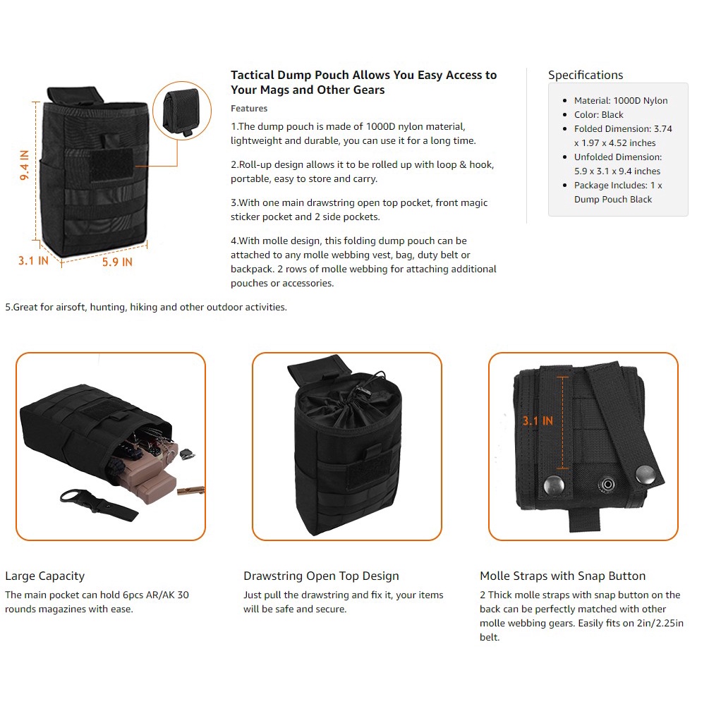 LUC 1000D Molle Dump Pouch Drawstring Magazine Return Pouch Mag Dump Pouch Ammo Pouch Utility Camping Fanny Pack