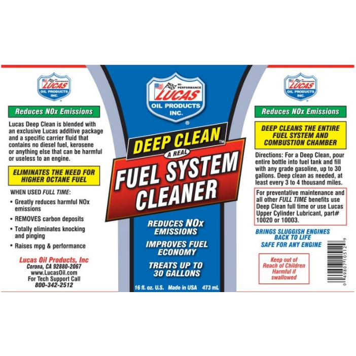 LUCAS Oil USA Petrol Deep Clean Fuel System Cleaner 473ML Remove Carbon Increase Performance 100% Genuine
