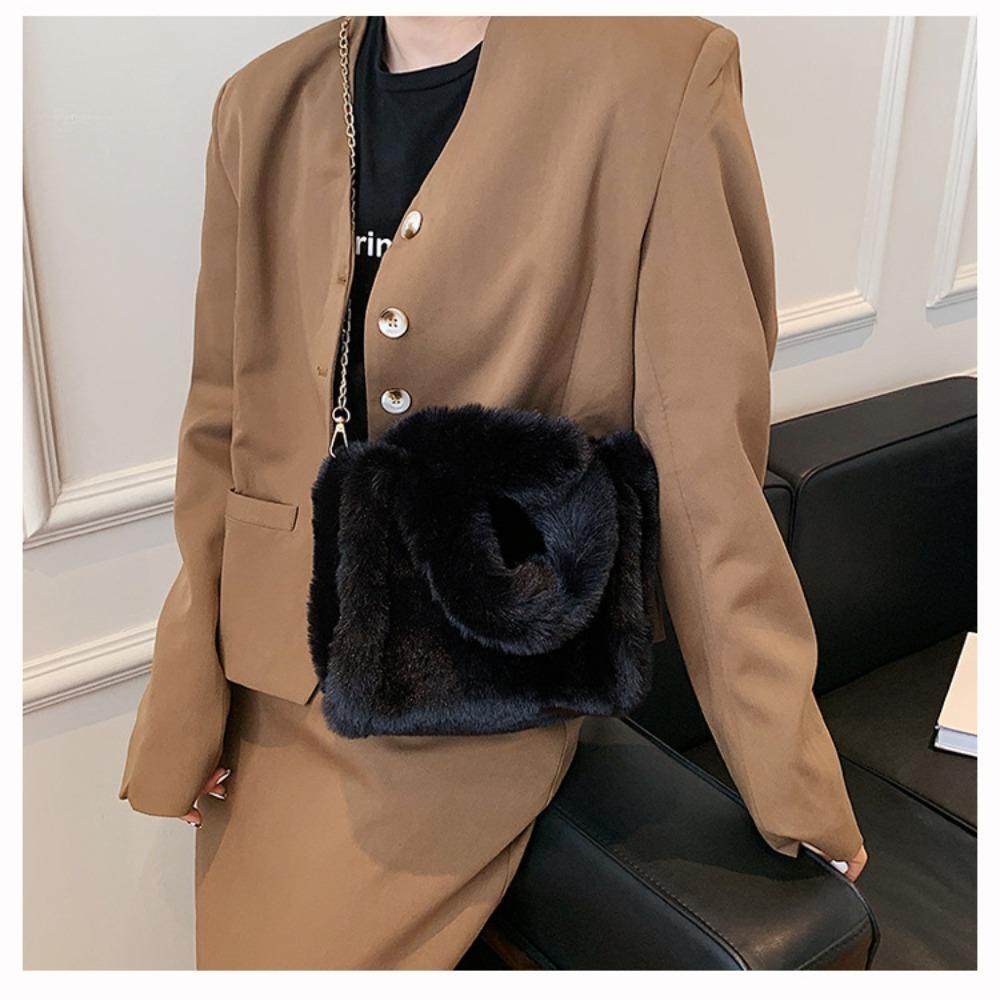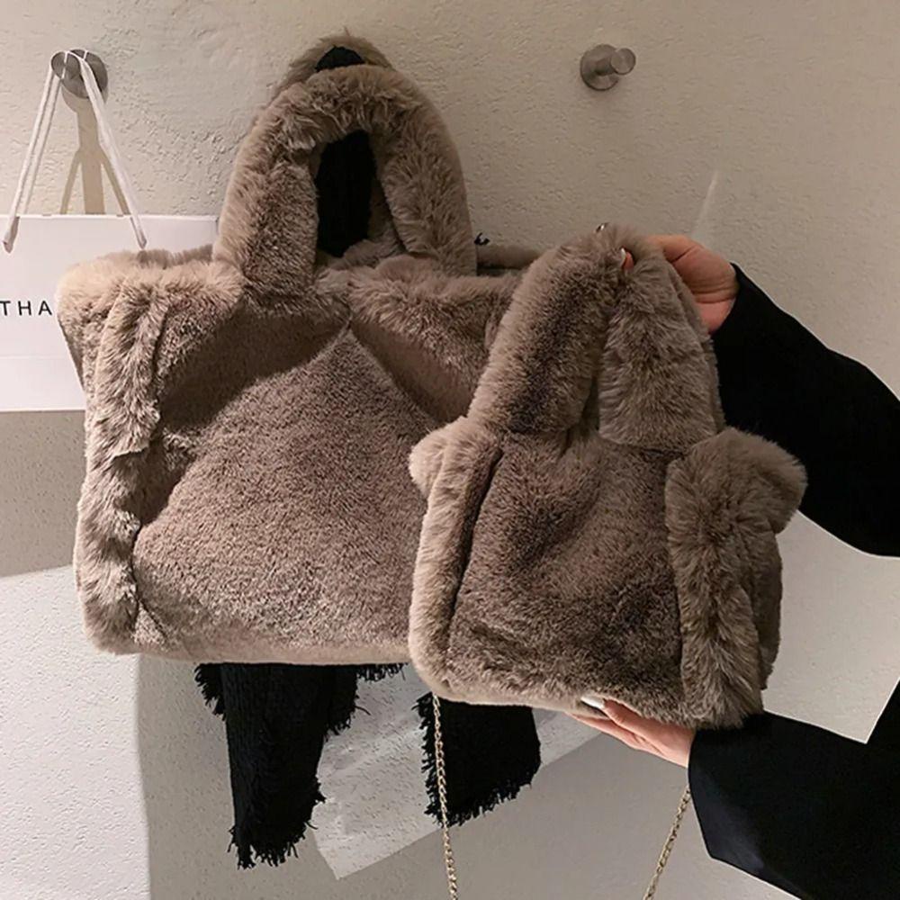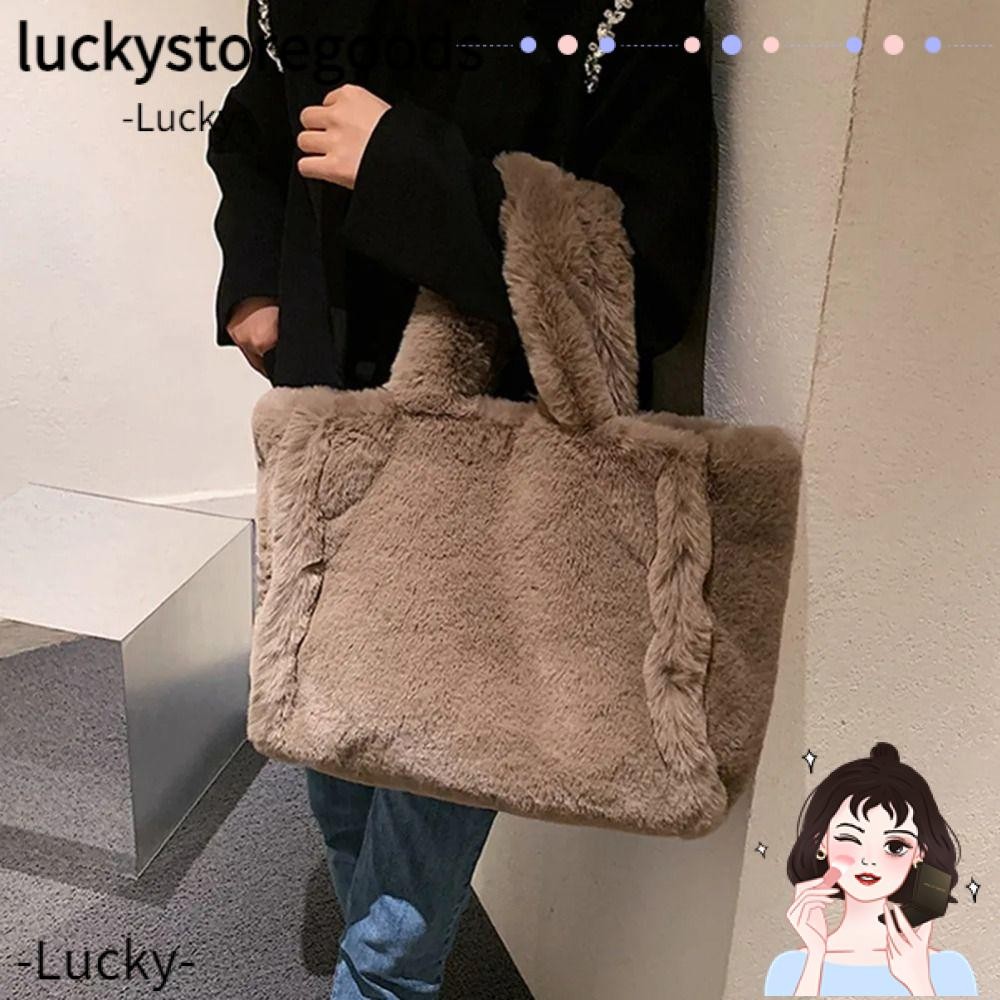 LUCKY Shoulder Bag, Faux Fur S/L Tote Bag, Fashion Plush Fluffy Satchel Bag Women