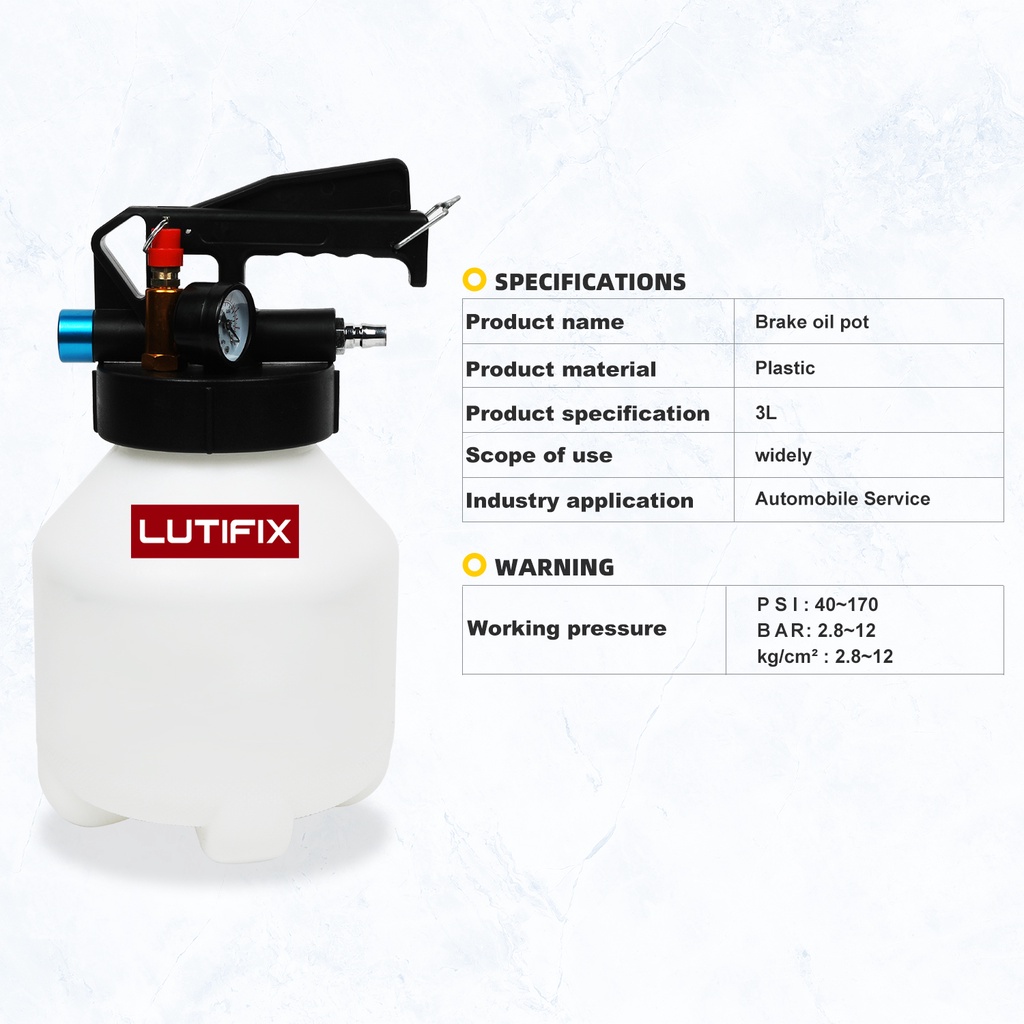 LUTIFIX 3L Pneumatic Brake Fluid Oil Changer Brake Drainer Oil Pump Pneumatic Filler Pressure Gauge Oiler