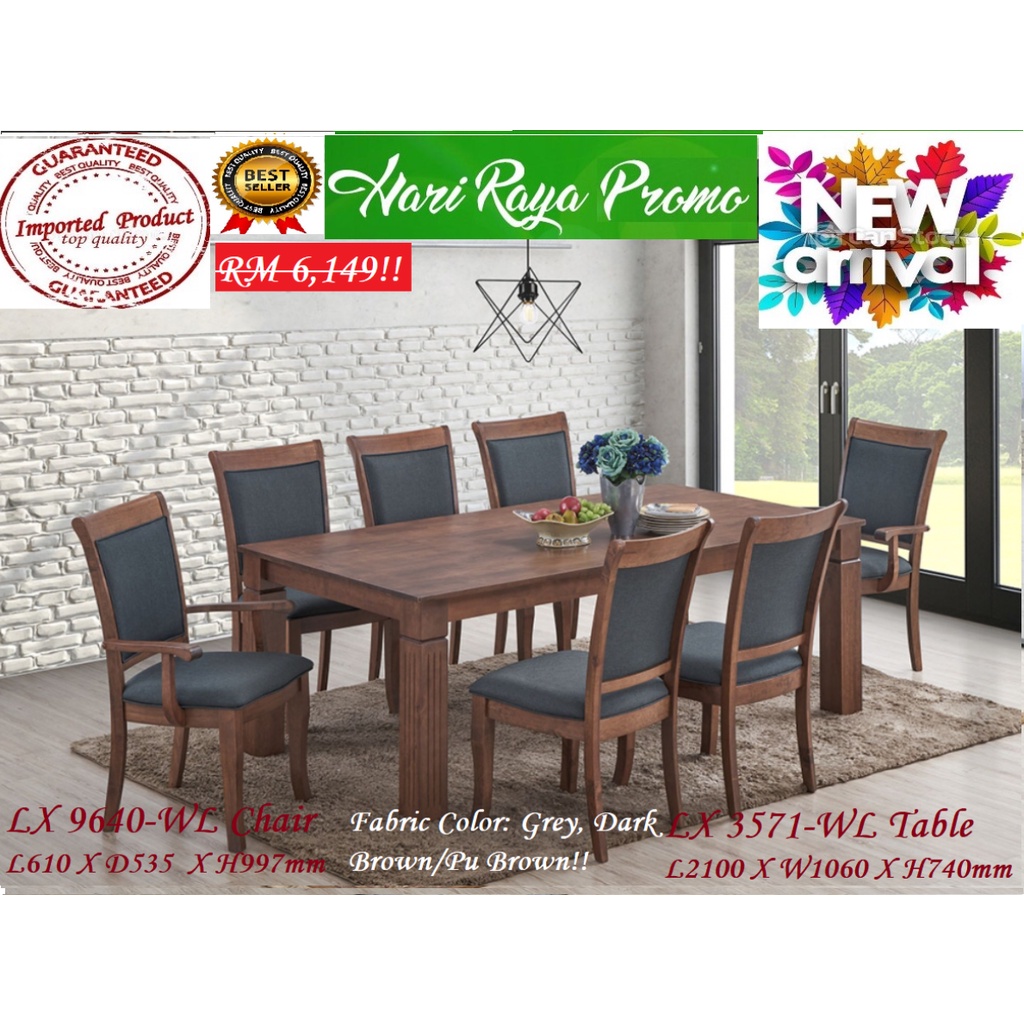 LX 3571, 7ft Wooden Dining TABLE+ 8 Dining CHAIRS, Also available 6ft Table + 6 Chairs!! Imported, Ready STOCK