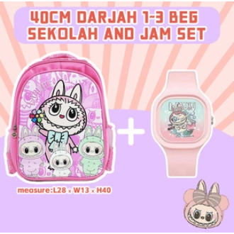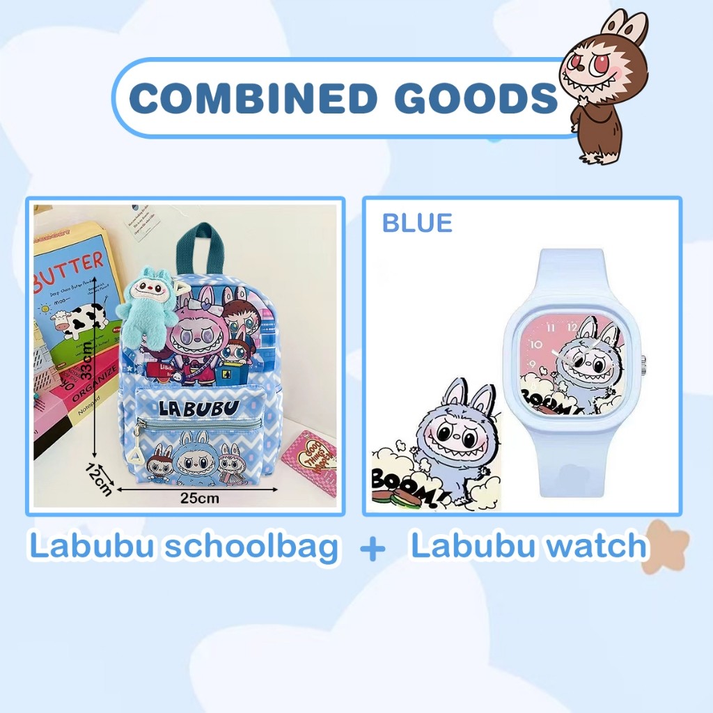 Labubu Cute Primary School Backpack Kindergarten Backpack and Labubu Watch Set Popmart Birthday Gift Set Christmas Gift
