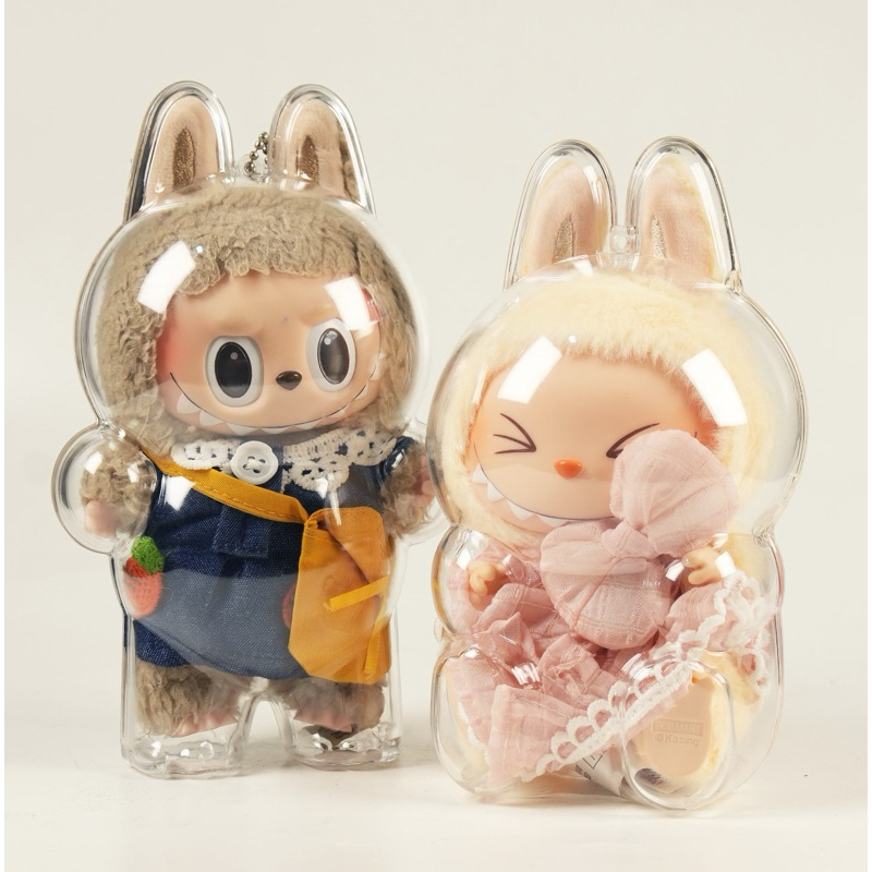 Labubu V1 & V2 Case Clear Macaron Pumpkin Doll Protector Have a Seat Coca Cola Stand Sit Cover Protector Casing Hardcase Acrylic Doll Protector Best Quality