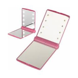 Lady Essential Makeup Compact Folding Pocket Size Mirror with LED Light Pink