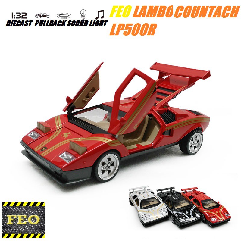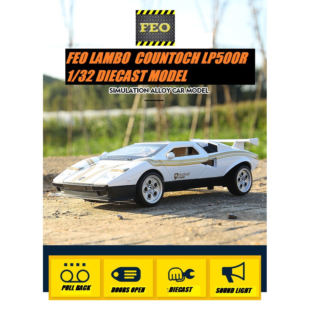 Lambo LP500R Countach Diecast Car Diecast Model Toy Vehicle Pull Back Sound Light 1:32