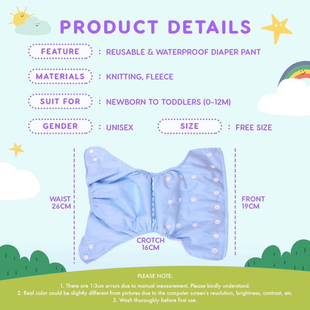Lampin Bayi.newborn Baby Waterproof Diaper Pants Adjustable Button Colour Babies Diapers |