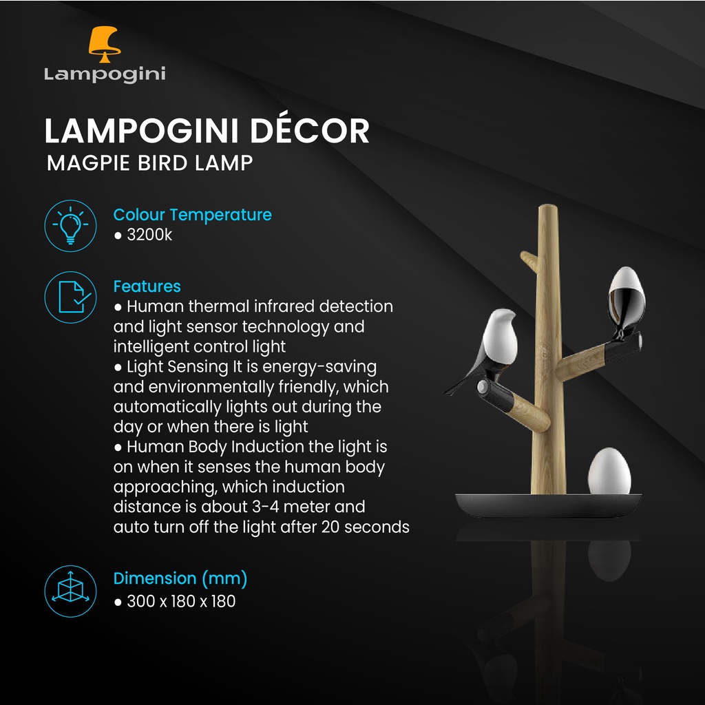 Lampogini Decor Magpie Bird Lamp