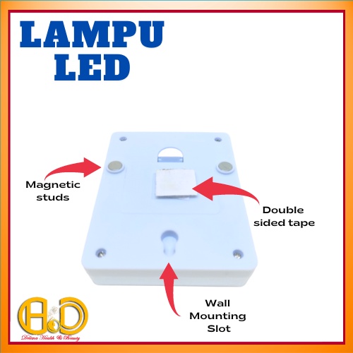 Lampu LED suis viral, wireless LED yang sangat terang, lampu serbaguna led, lampu kecemasan LED menggunakan 3 bateri AAA