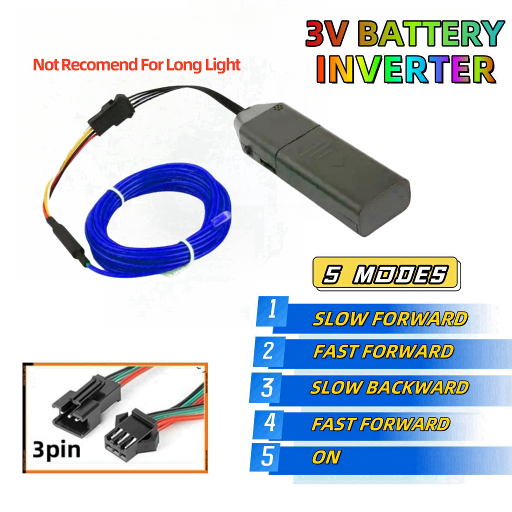 Lampu Neon EL Wire Chasing Light Plug N Play Waterproof 1M/3M/6M Light Strip Battery USB Controller
