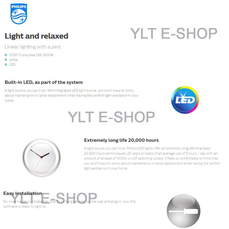 Lampu T5 Philips LED T5/ Trunkable Linea - 3000K/ 4000K/ 6500K, 1ft/ 2ft/ 3ft/ 4ft - YLT