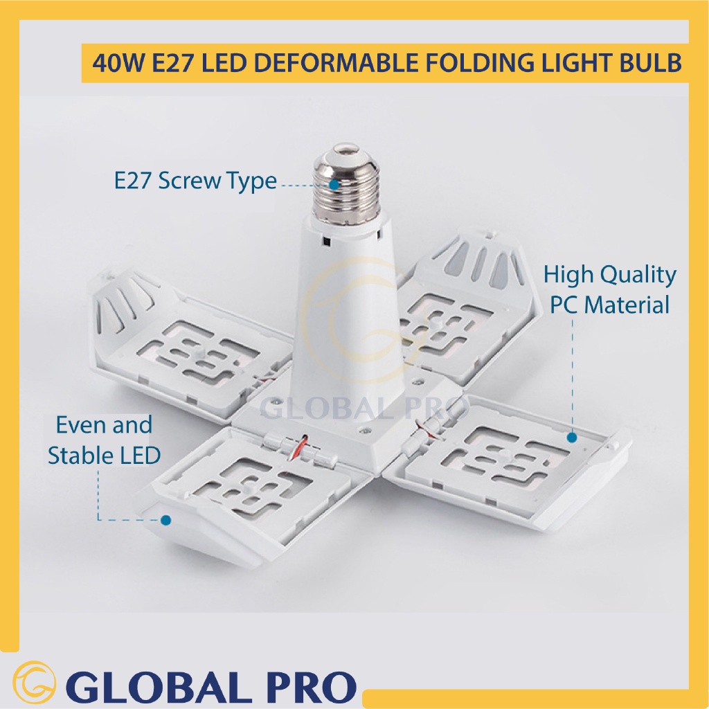 Lampu bilik SQUARE 40W E27 Adjustable Deformable LED Light Bulbs, Super Bright LED Lights, for Garage, Warehouse, Home,