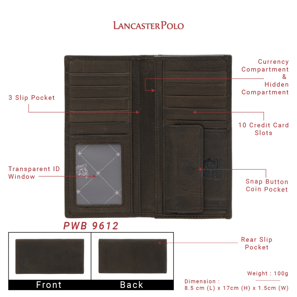 Lancaster Polo Men's Top Grain Leather Bi-Fold Long Wallet Bag Dompet Lelaki- 2 Patterns-PWB 9611/9612