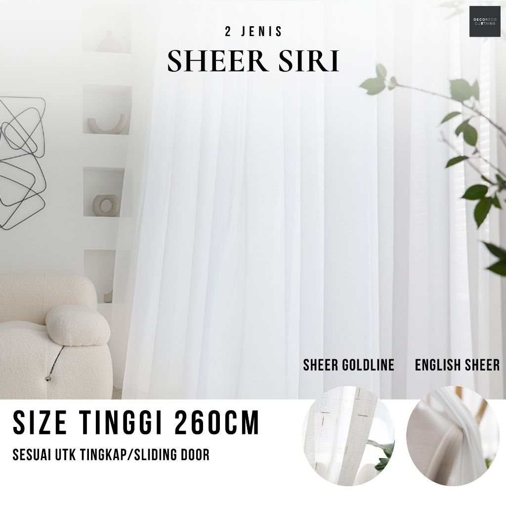 Langsir English Sheer Plain, Langsir Lining Gold Line Ready Stock Siap Jahit Free Hook / Ring