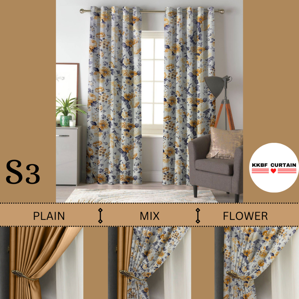 Langsir Sarona (RING) Ready Made Curtain / Langsir Bercorak Bunga / Langsir Rumah / Langsir Sliding Door / Langsir Pintu