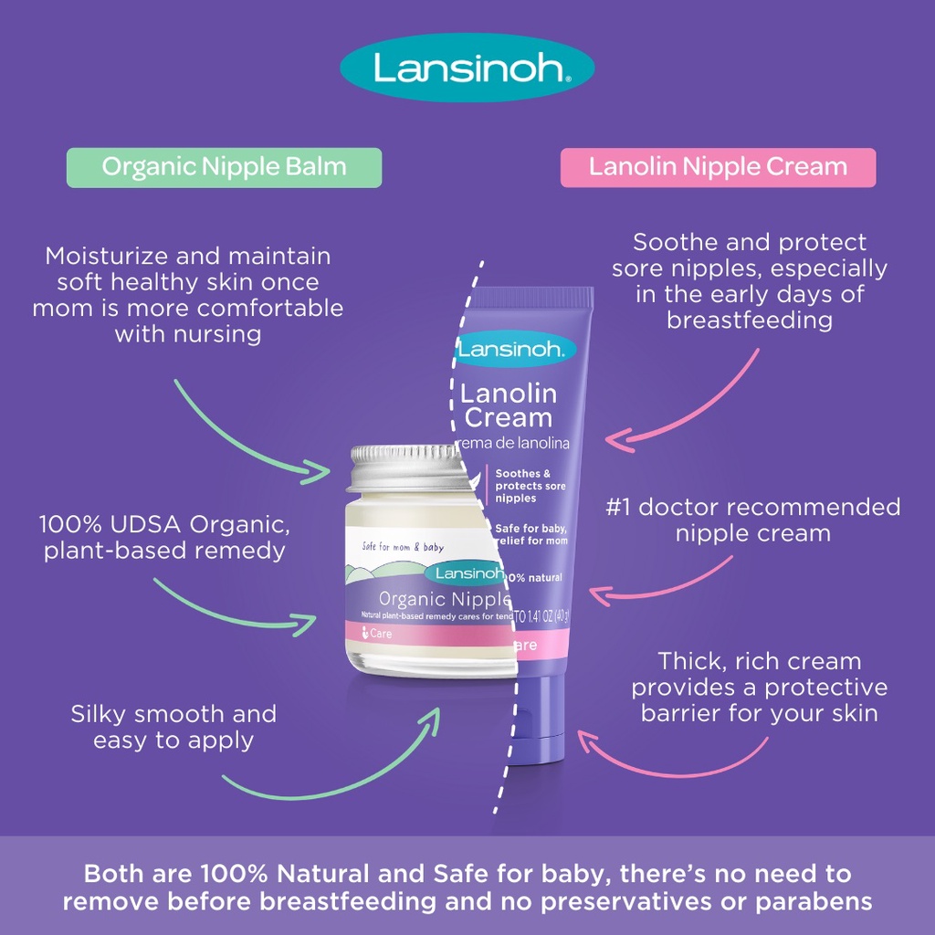 Lansinoh HPA Lanolin Nipple Cream for Sore & Cracked Nipples | Organic Nipple Balm | Lip Balm