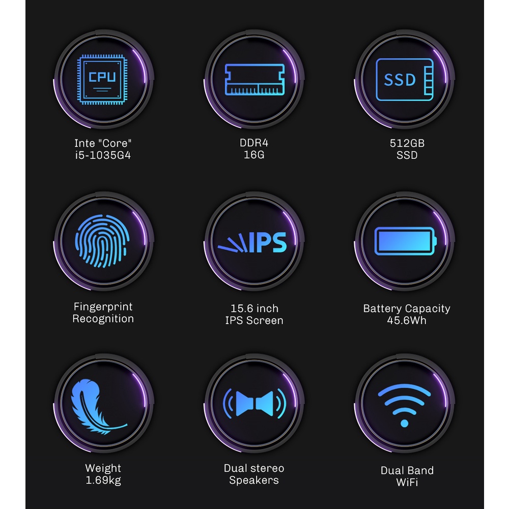 Laptop 15.6-inch | Intel Core i5-1035G4 CPU FHD | 16GB RAM | 512GB SSD | Fingerprint | Windows 10 | Backlit keyboard |