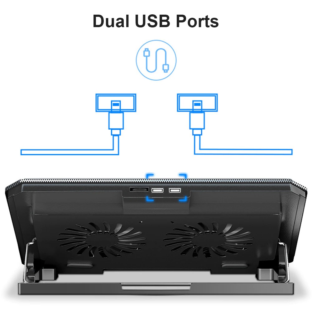 Laptop Cooling Pad - Two USB- Adjustable Notebook Lifting Cooling Stand Gaming Laptop Radiator Dual Fans Cooler