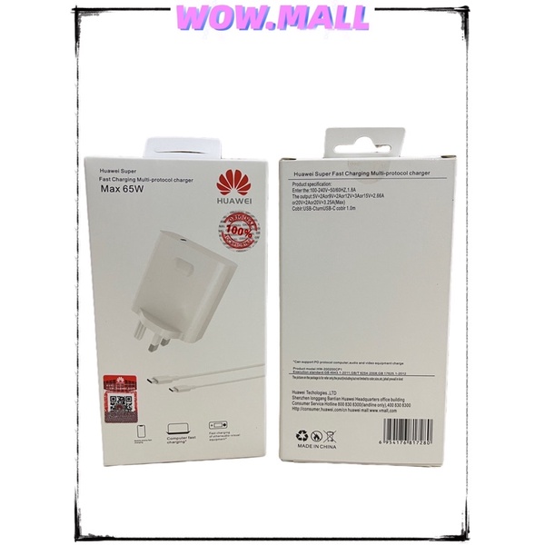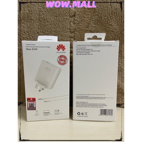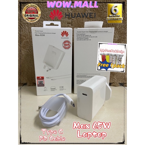 Laptop HUAWEI 65W Charger PD Standard USB C to C Super Charge P40 Pro Mate xs P30 Pro MateBook D15/D14/13/E/X Pro